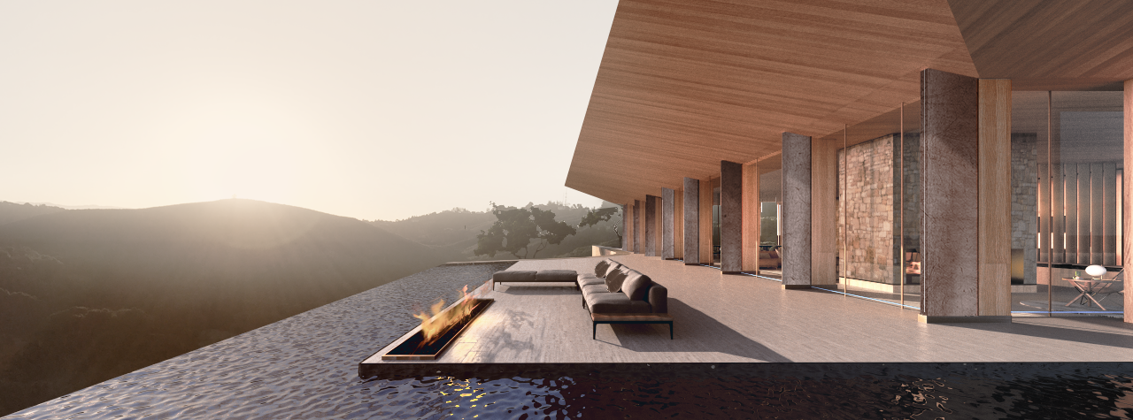 The sweeping solar roof is oriented to gather solar energy and divert rainwater to the arrival court where a subterranean cistern mimics principles of 14th century Venice. These large roof overhangs also provide much needed shade during the summer months while allowing the sun’s rays to enter and heat the home during winter months. An advanced heat mirror glazing system allows for a constant visual to the surrounding natural setting, while maintaining the same insulating capacity as standard wall construction.